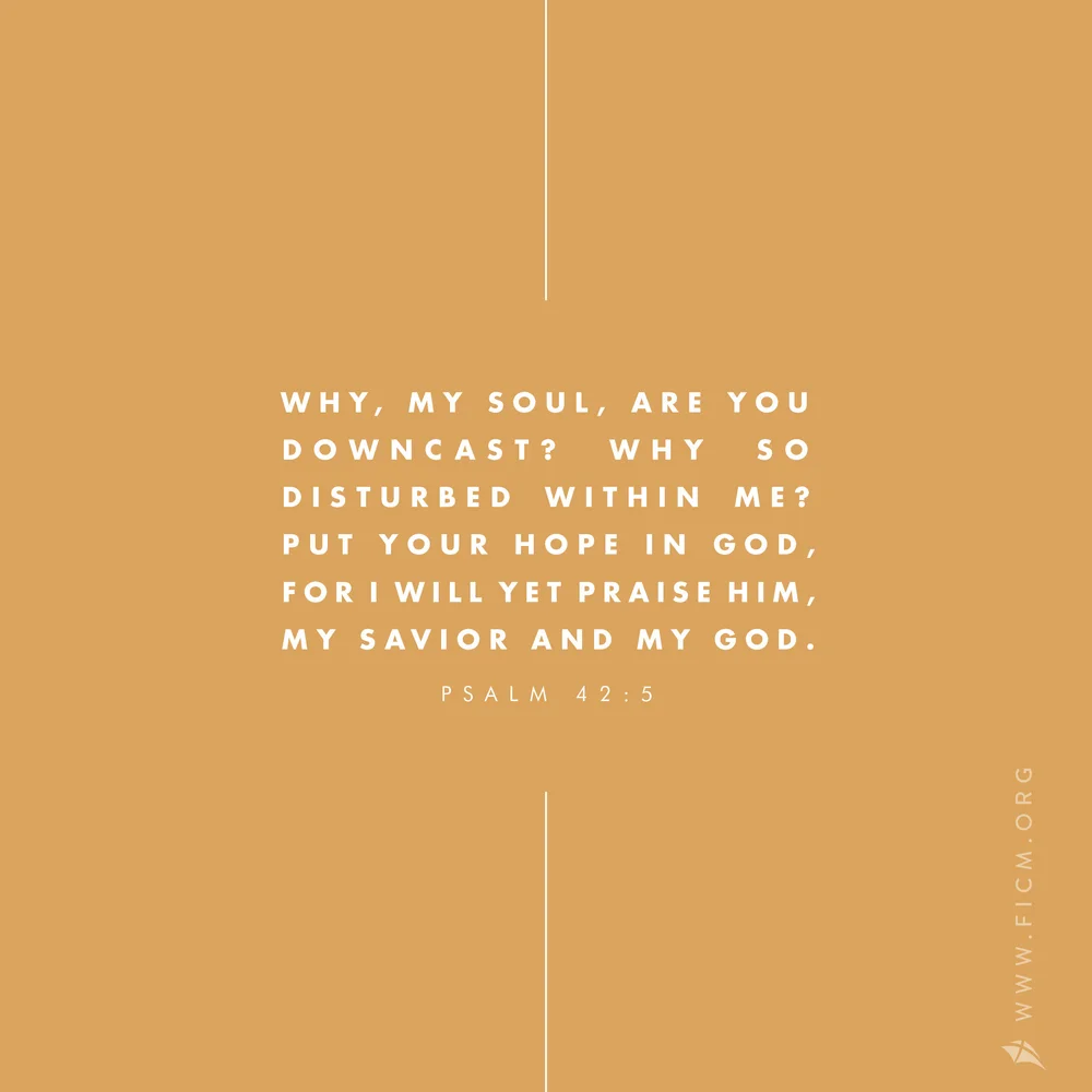 Psalms 42 5 11 Why My Soul Are You Downcast Why So Disturbed Within Me Put Your Hope In God For I Will Yet Praise Him My Savior And My God My Soul Is